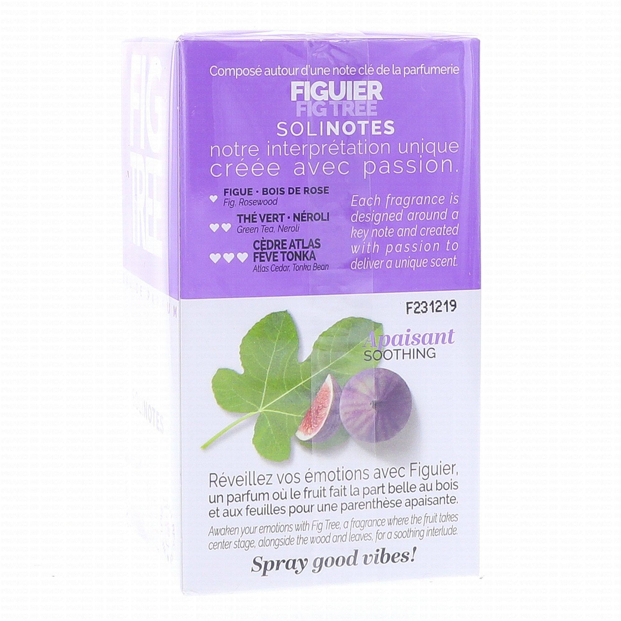 Solinotes vous invite à une balade olfactive sous les figuiers majestueux de la méditerranée.Ce parfum explore la richesse du figuier dans sa totalité. Il capture la fraîcheur du fruit charnel, l'écorce douce et les notes vertes des feuilles pour créer une parenthèse apaisante.