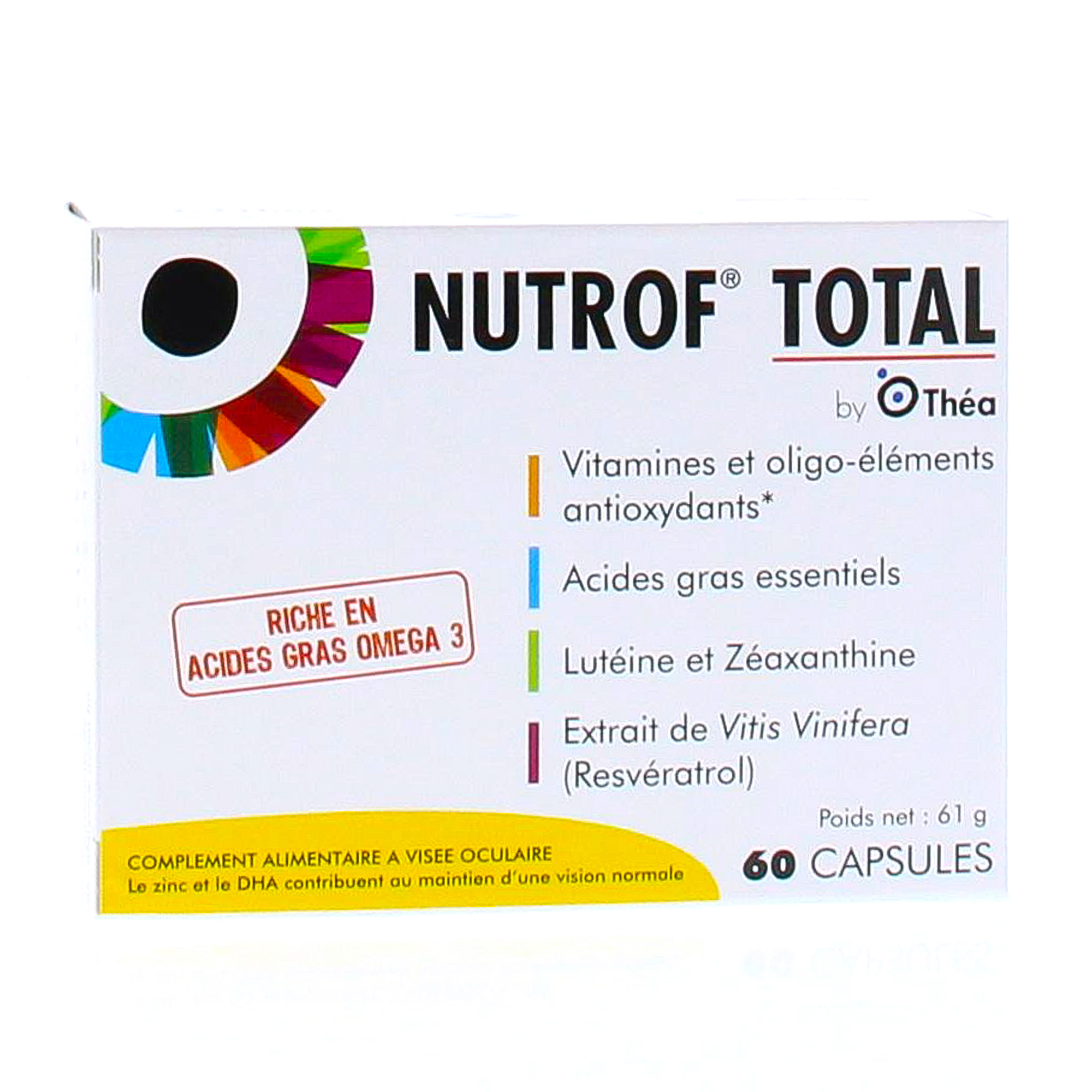 THEA Nutrof total riche en Zéaxanthine contribue à maintenir une vision normal. recommandé dans l'hydratation et l'irritation des yeux.