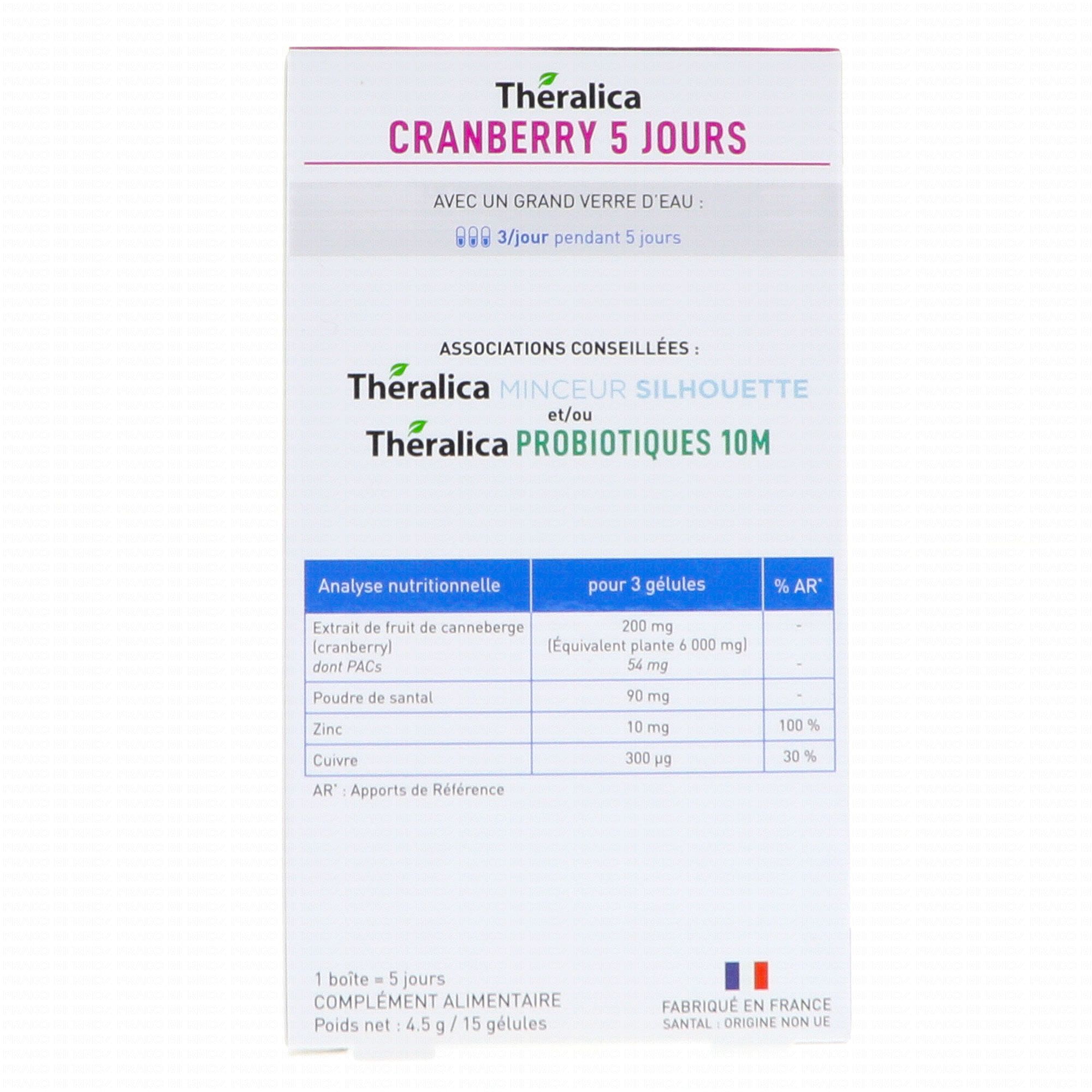 THERALICA Cranberry 5 jours système urinaire x15 gélules contient les éléments suivants :