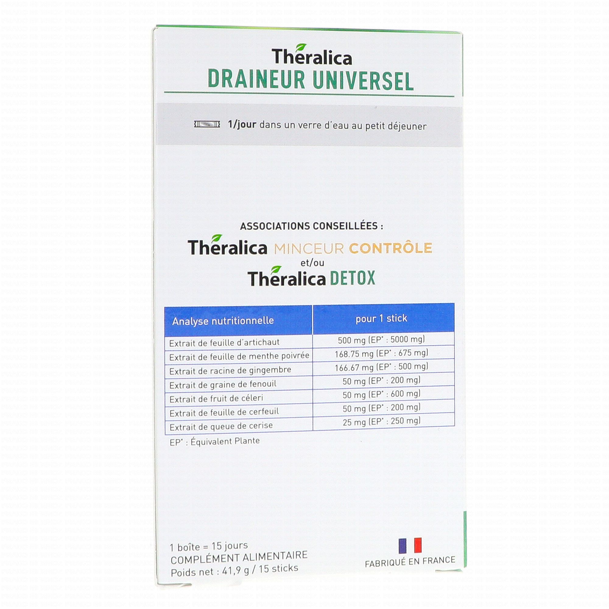THERALICA Draineur Universel 15 sticks contient les éléments suivants :