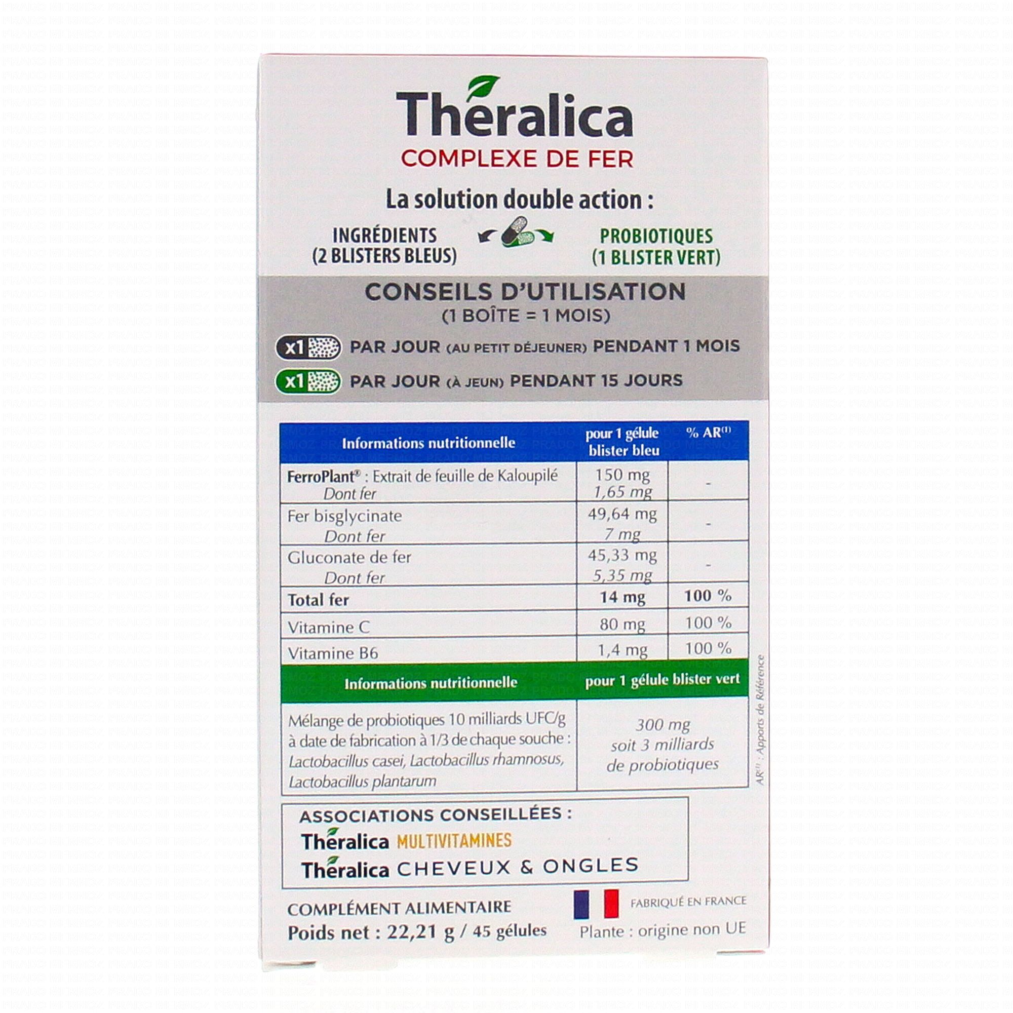 THERALICA Fer 45 gélules contient les éléments suivants :