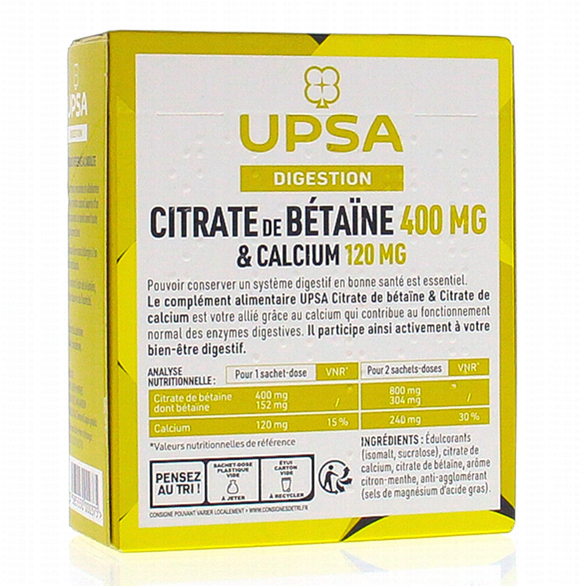 UPSA DIGESTION - Citrate de bétaïne 400mg et de calcium 120mg x10 sachets #skincare