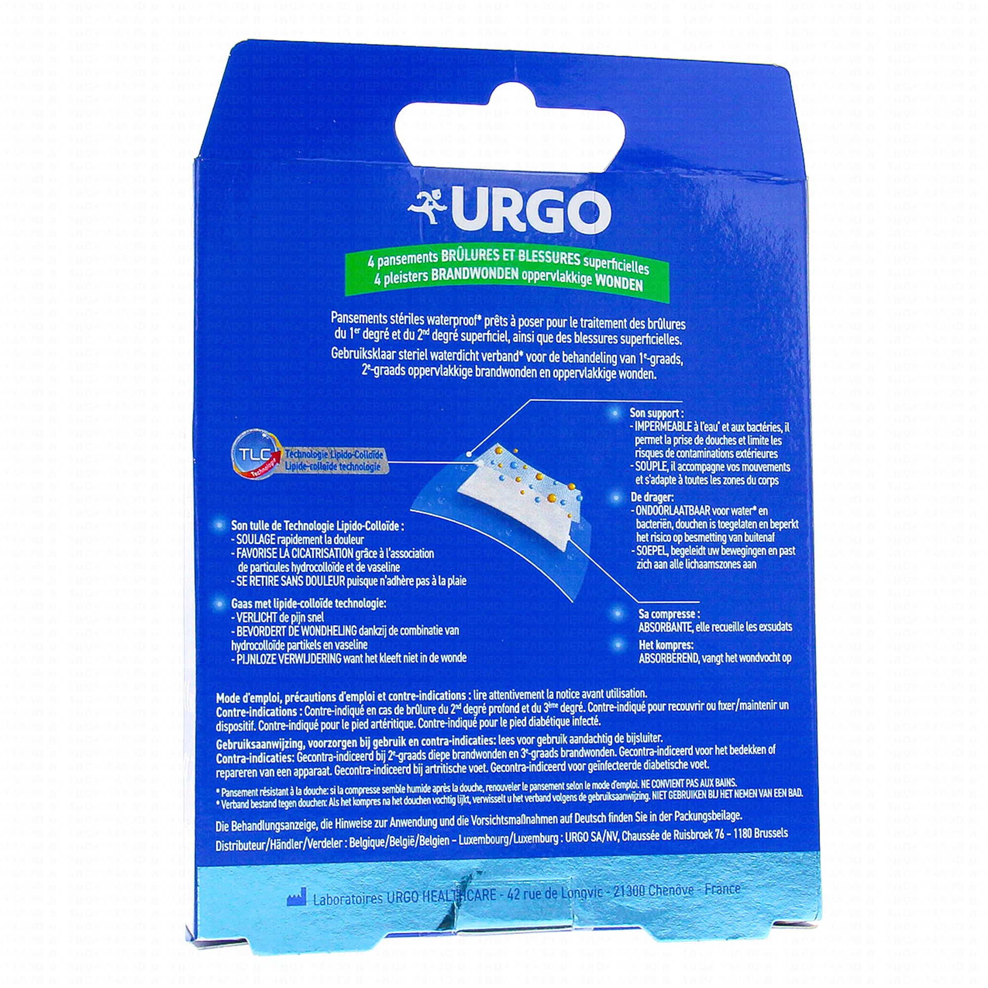 Les pansements Urgo sont destinés aux brulures du premier et du second degré ainsi qu' aux blessures superficielles comme les coupures. Ils soulagent, apaisent et favorisent la cicatrisation grâce au tulle fabriquée à partir de la technologie lipidocolloïde (TLC) qui combine la vaseline et l'hydrocolloïde. Ils sont résistants à l'eau et permettent la prise de douche. Souple, ils s'adaptent aux mouvements et garantissent un retrait indolore sans douleur.