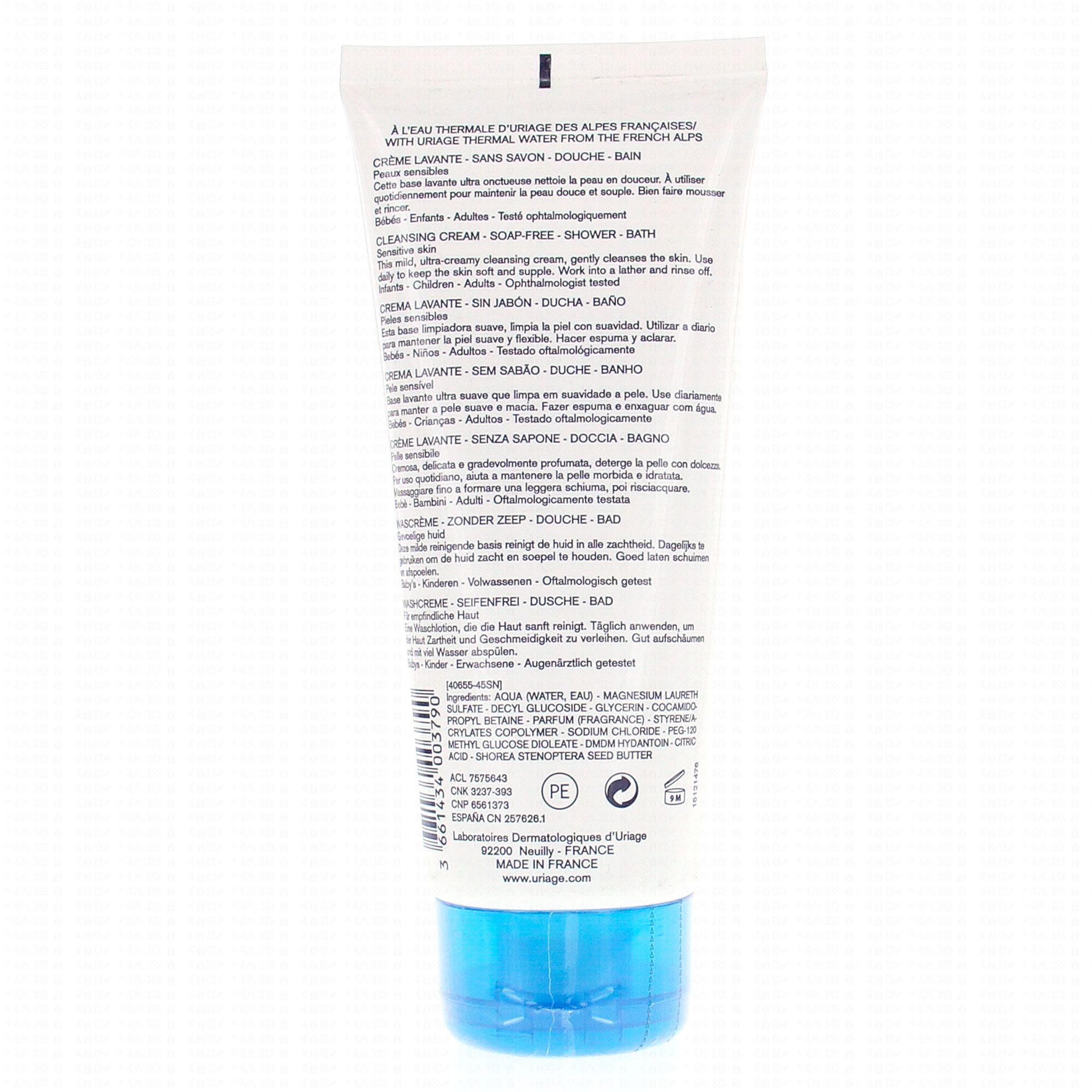 Formulée sans savon, la crème lavante Uriage est particulièrement recommandée pour le nettoyage de la peau fragile. Sa texture douce est onctueuse forme une barrière protectrice qui préserve l'épiderme. A l'eau thermale d'Uriage, riche en oligoéléments et sels minéraux, aux propriétés apaisantes, hydratantes et antiradicalaires. Préserve le film hydrolipidique cutané. Ne pique pas les yeux. Sans paraben, pH physiologique. Hypoallergénique. Conditionnement : tube plastique avec bouchon verseur (200 ml), flacon pompe plastique (500 ml).