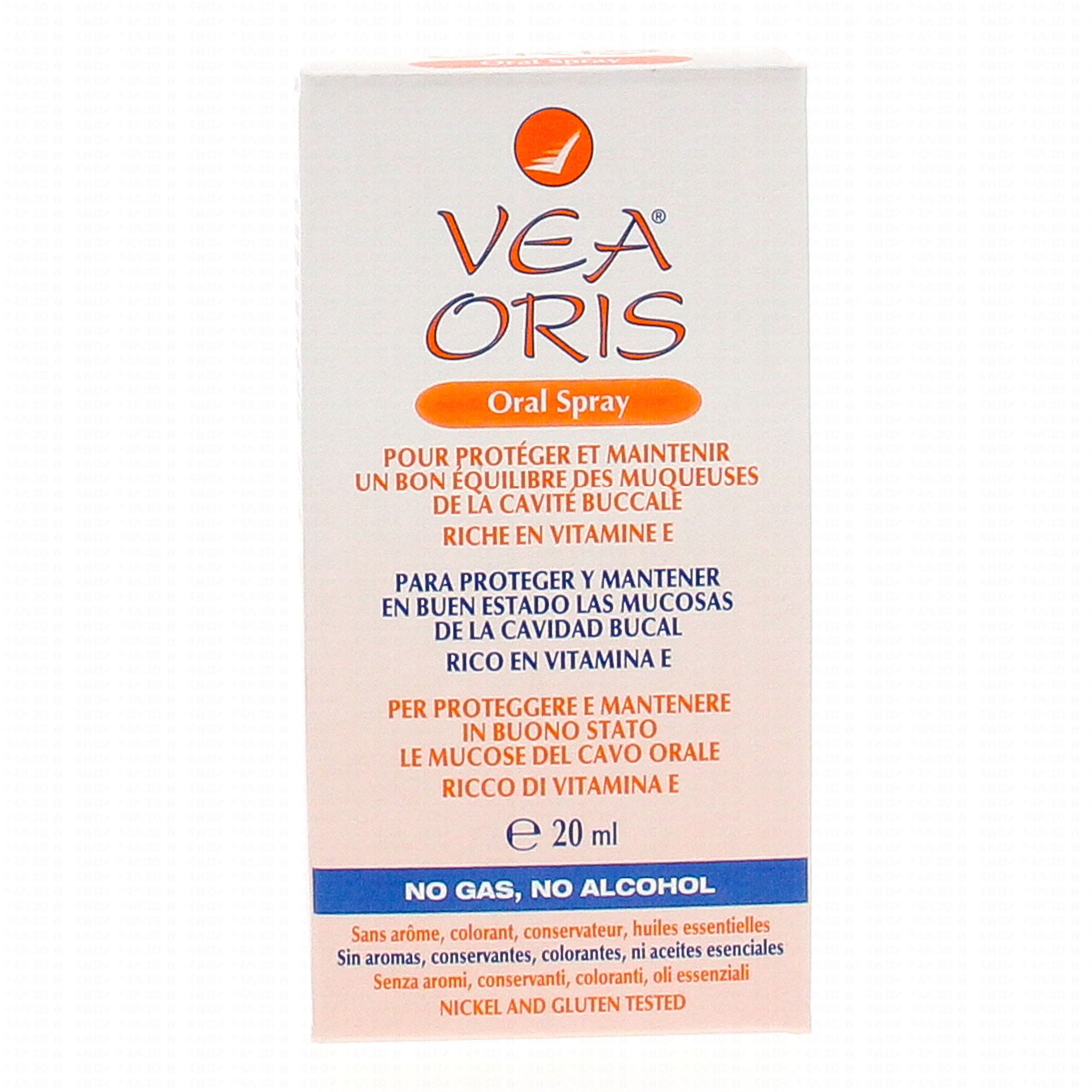 Le spray oral Vea Oris est une composition riche en vitamine E. Son action antioxydante et régénérante protège l'équilibre des muqueuses de la cavité buccale. Sans gluten et sans nickel, sans arôme, sans alcool, sans huiles essentielles, sans colorant ni conservateur, ce produit est recommandé aux personnes allergiques, avec hyperactivité des muqueuses ou sujettes à l'idiosyncrasie.