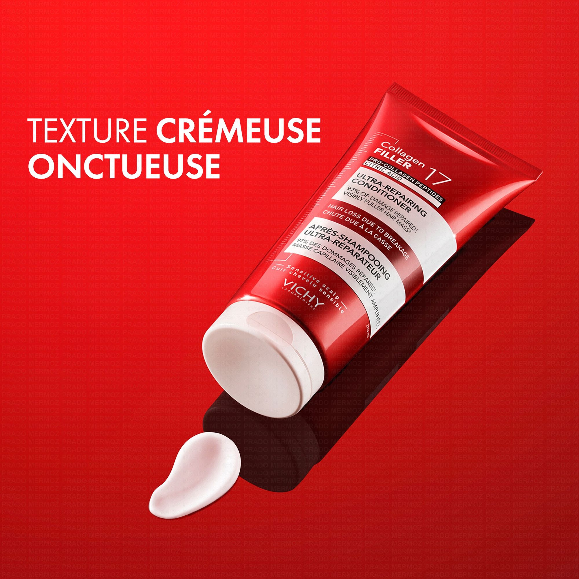 INNOVATION SCIENTIFIQUE : Découvrez l'Après-Shampooing Ultra-Réparateur Collagen 17 Filler. Son efficacité cliniquement prouvée offre une fibre capillaire 10x plus forte (1), +53% de volume (2) et une masse capillaire visiblement amplifiée (3). Le tout dans une texture crémeuse onctueuse.