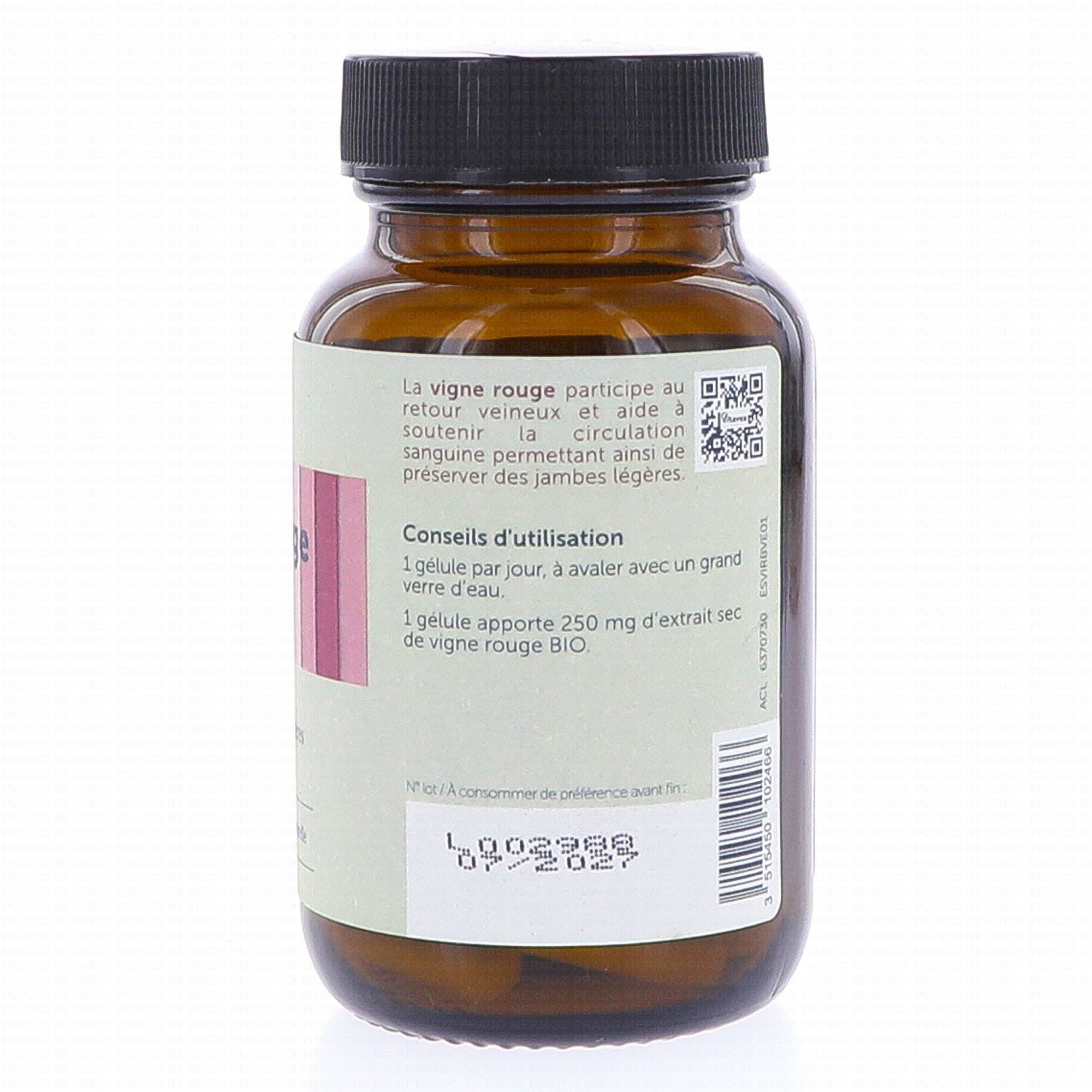 NUTRI'SENTIELS BIO Vigne Rouge 20 gélules est un complément alimentaire qui contribue au bien être circulatoire grâce à la présence de Vigne rouge.