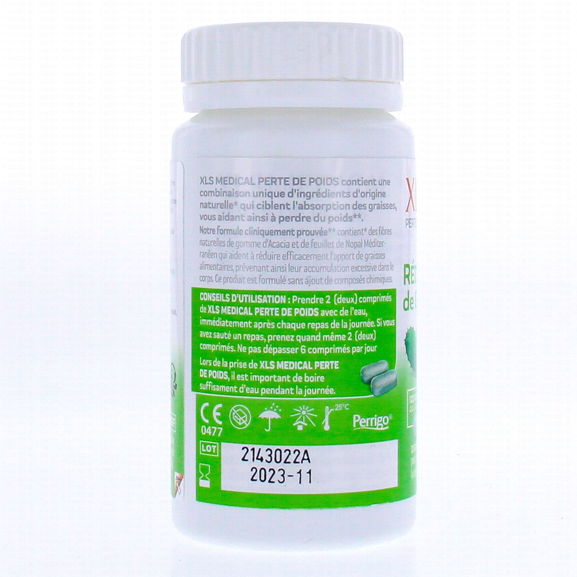 Prendre 2 comprimés de XLS MEDICAL PERTE DE POIDS avec de l'eau 3 fois par jour immédiatement après chaque repas.